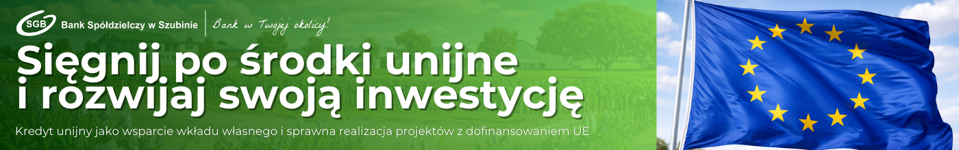 Szczegółowe informacje dotyczące warunków kredytu unijnego, wymaganych dokumentów oraz zasad uruchamiania środków dostępne są w placówkach Banku Spółdzielczego w Szubinie oraz u doradców kredytowych.